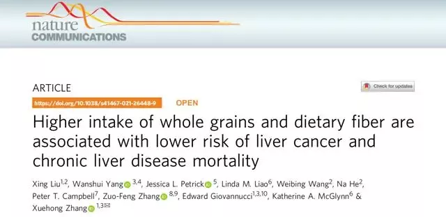 The research article entitled “Higher intake of whole grains and dietary fiber are associated with lower risk of liver cancer and chronic liver disease mortality” has been published in Nature Communications.